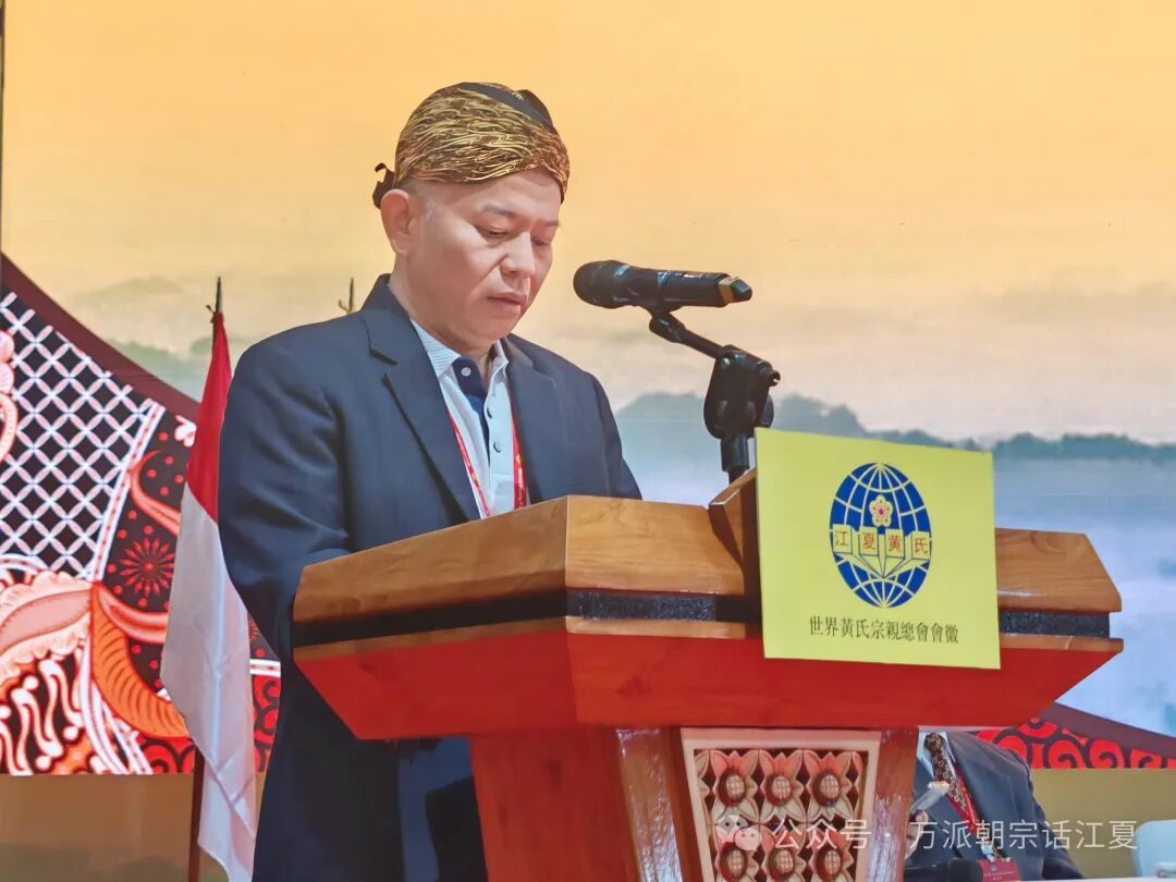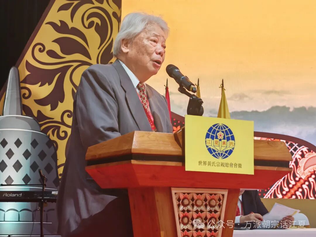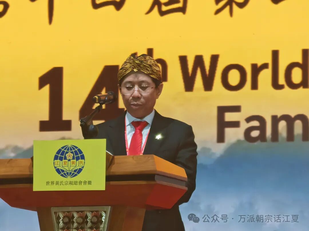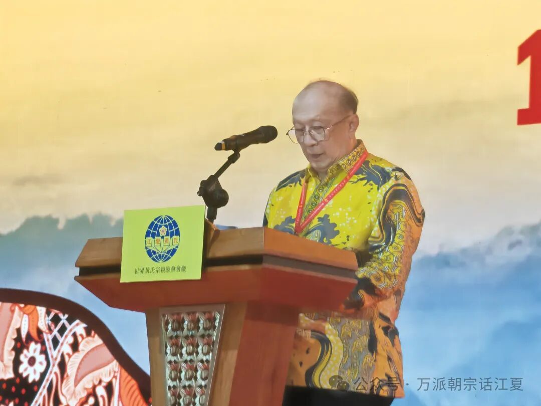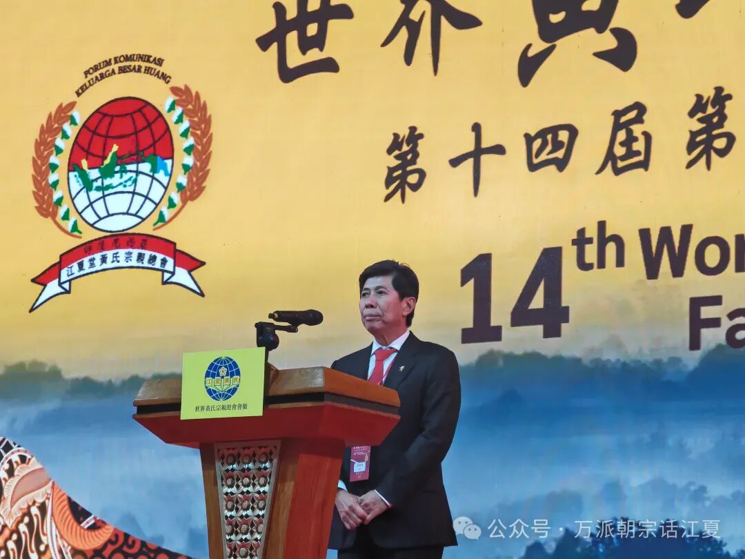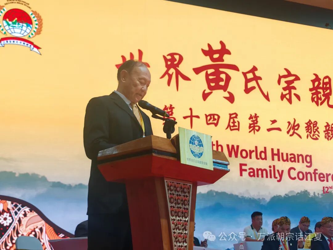 世界黄氏宗亲总会第十四届第二次恳亲大会筹委会主席、印尼江夏堂黄氏总会总主席黄财利宗长致欢迎词