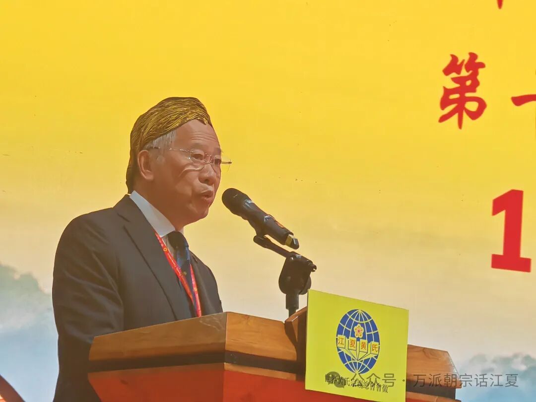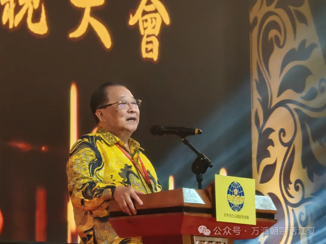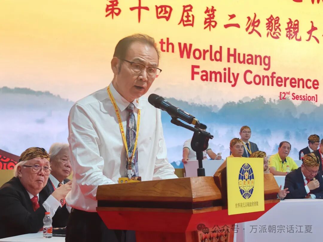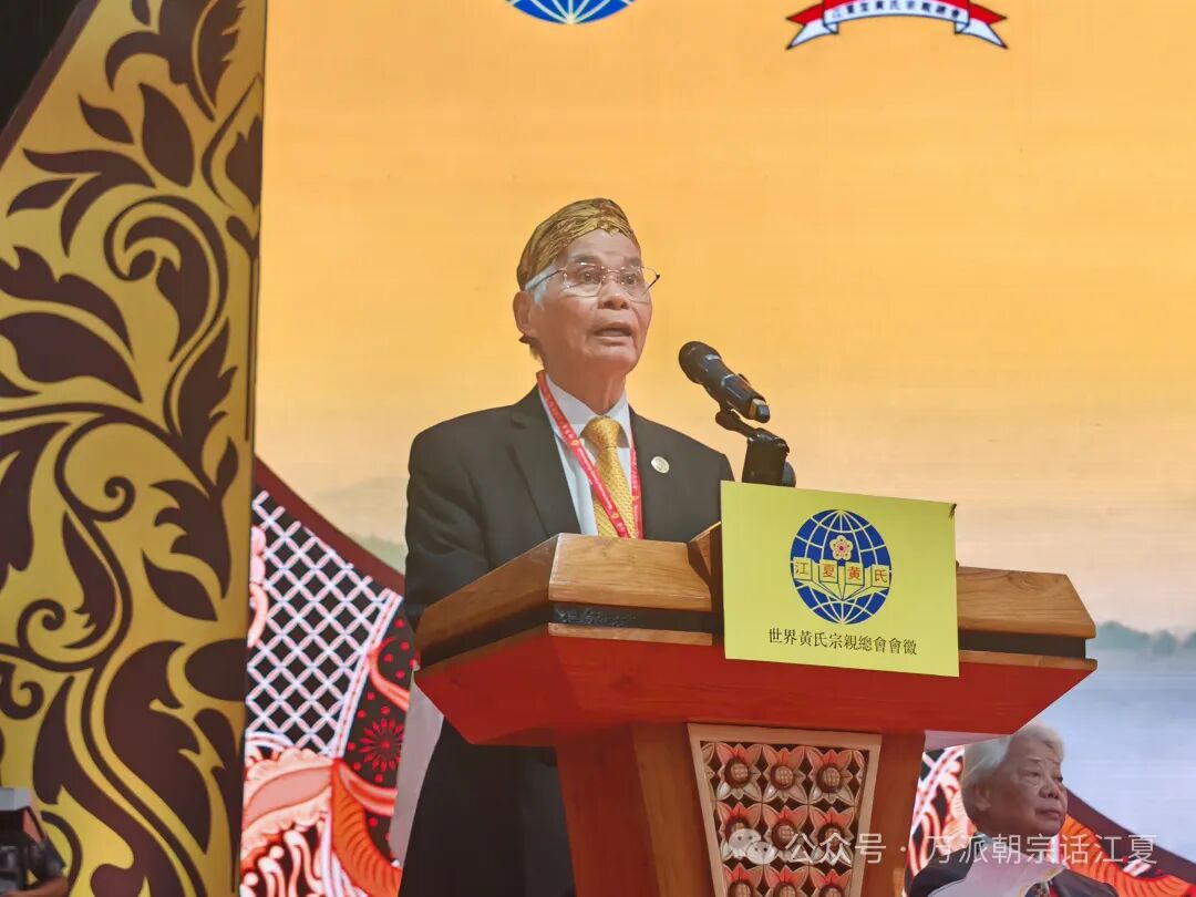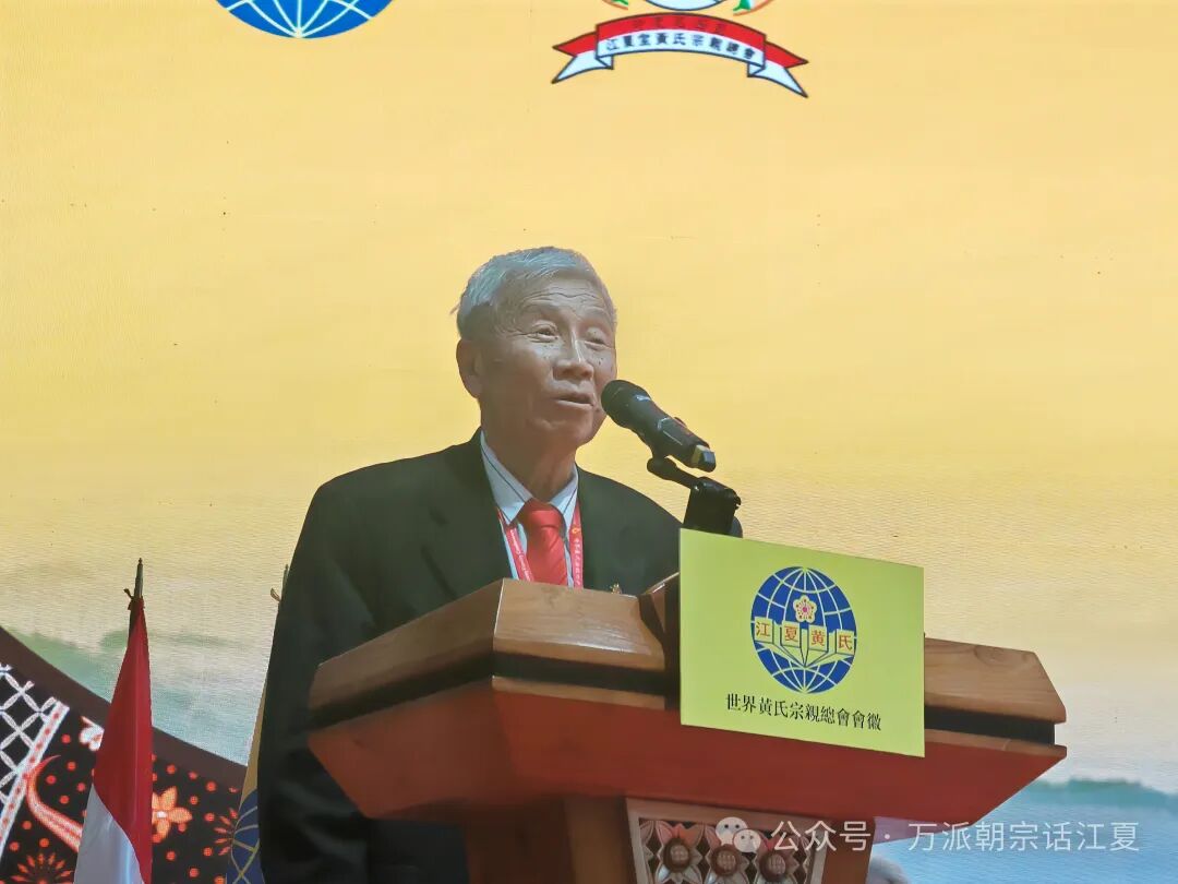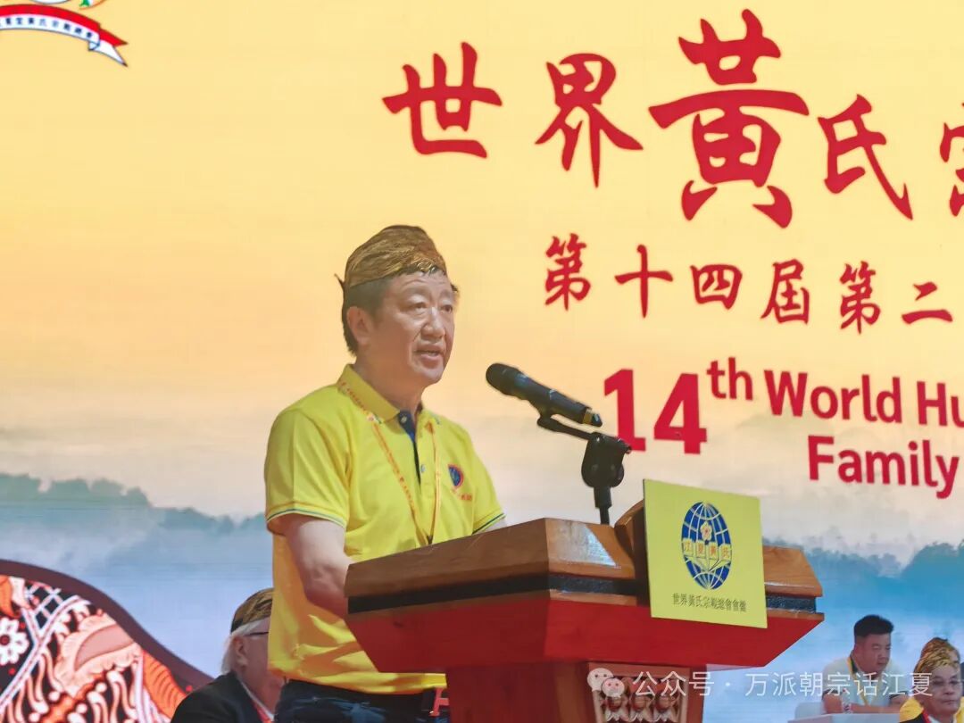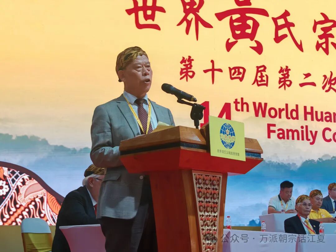 世界黄氏宗亲总会第十四届第二次恳亲大会筹委会主席、印尼江夏堂黄氏总会总主席黄财利宗长致欢迎词