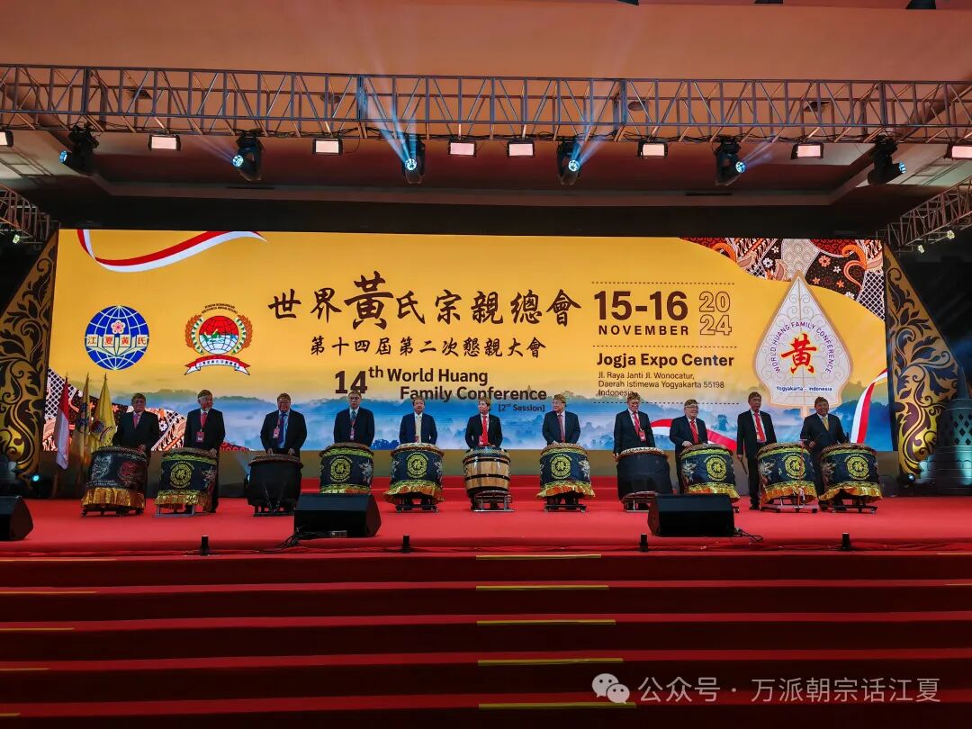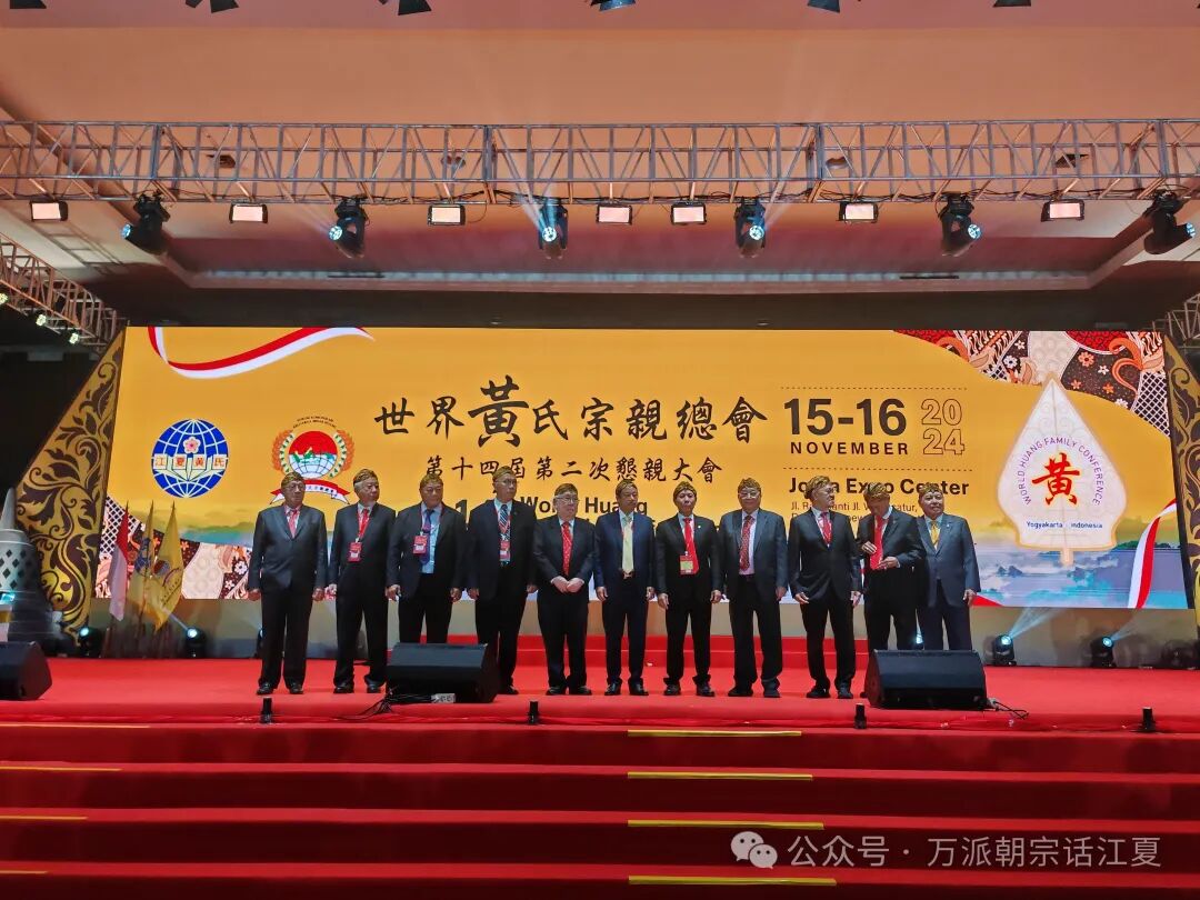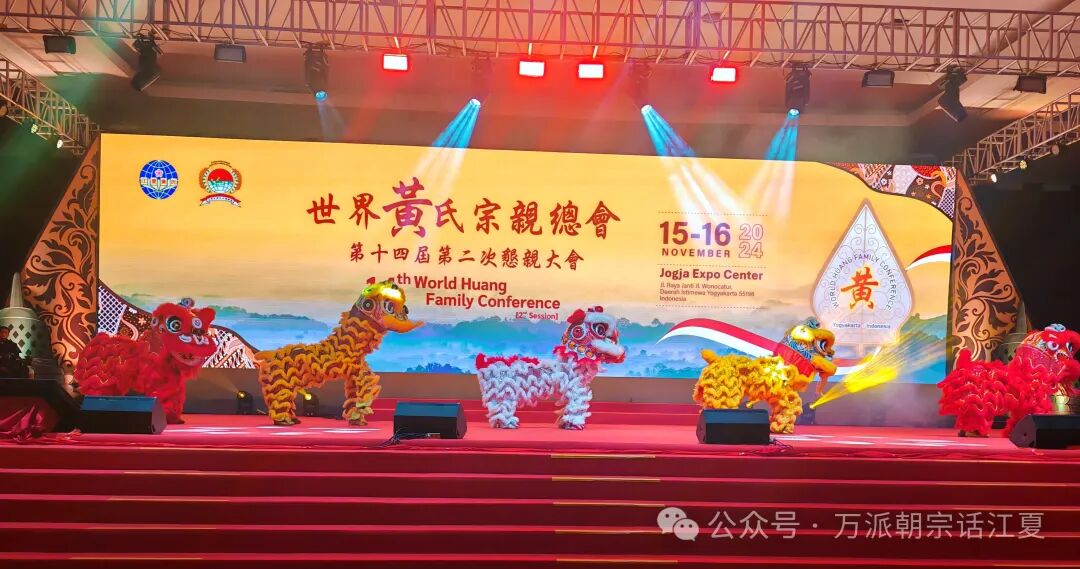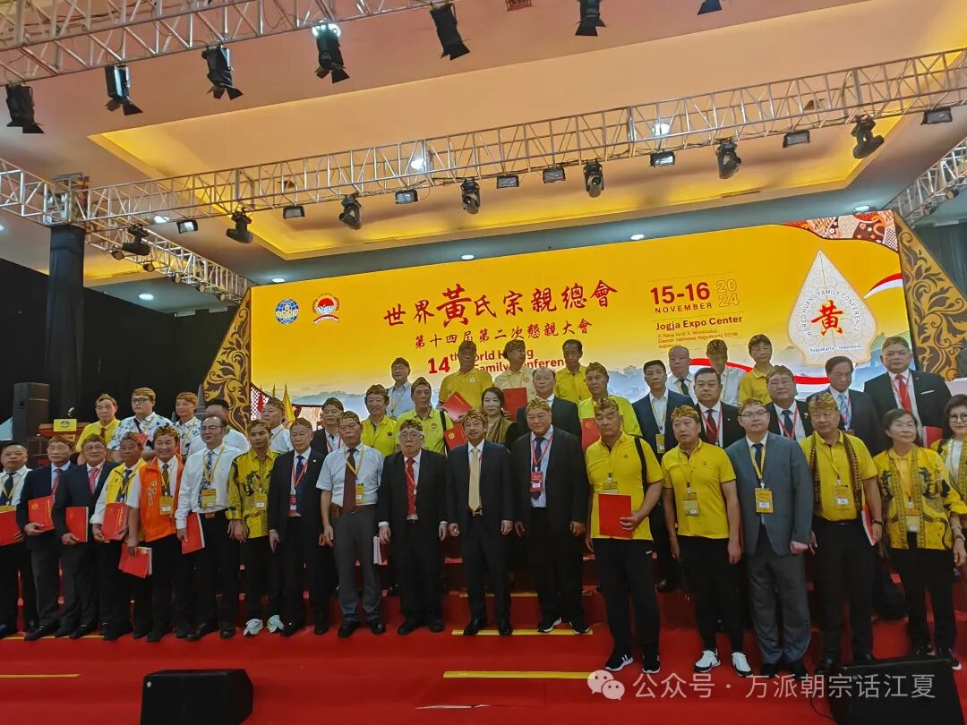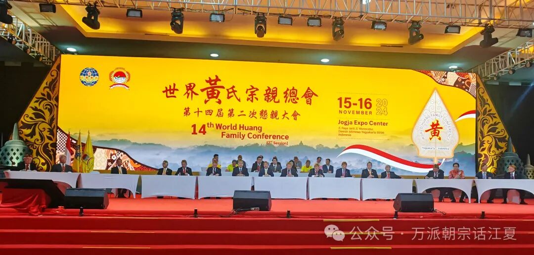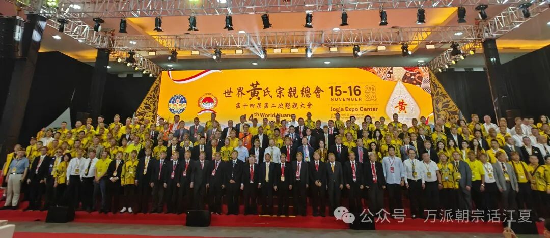 2024年11月15日-16日,为期两天的世界黄氏宗亲总会恳亲大会在印尼日惹特区展览中心举行!世界黄氏宗亲总会理事长黄英超宗长、秘书长黄印华宗长、监事长黄天恩宗长、永远名誉理事长黄德新宗长、黄木河宗长及世黄理监事会务人员及世界各国各地区黄氏宗亲总会两千多人参加会议。 15日上午,在印尼日惹特区展览中心举行祭祖仪式。世界黄氏宗亲总会理事长黄英超宗长、秘书长黄印华宗长、监事长黄天恩宗长、永远名誉理事长黄德新宗长、黄木河宗长,印尼江夏堂黄氏宗亲总会总主席黄财利宗长、恳亲大会筹委会执行主席黄春和宗长及世黄理监事会务人员和各国各地区代表参加祭祖仪式。 15日晚,世界黄氏宗亲总会第十四届第二次恳亲大会欢迎晚宴在印尼日惹特区展览举行。世界黄氏宗亲总会第十四届第二次恳亲大会筹委会执行主席黄春和宗长致欢迎词;世界黄氏宗亲总会理事长黄英超宗长、永远名誉理事长黄德新宗长分别致辞。